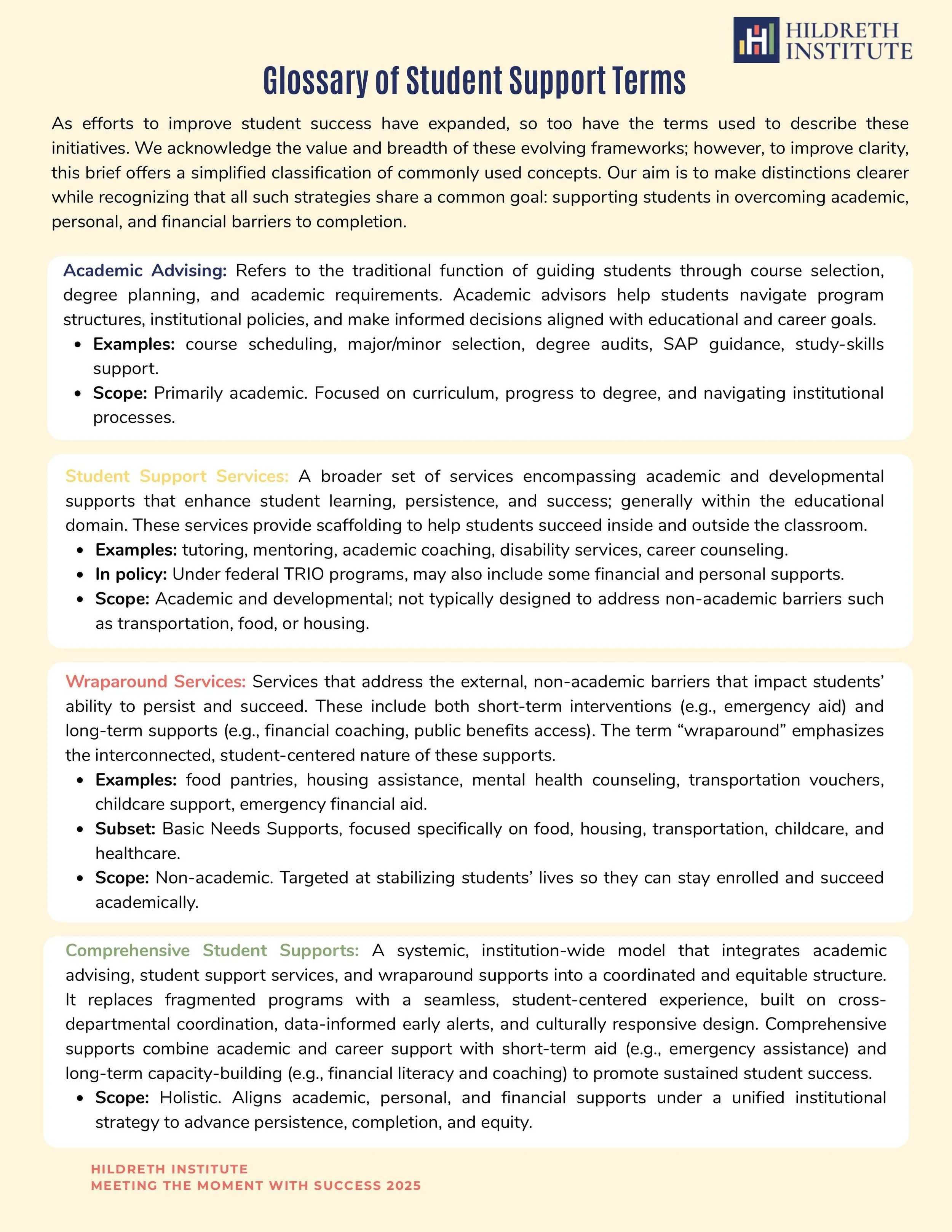 Glossary of Student Support Terms Fact Sheet Oct 30 Written By Leah Bloom Download PDF Click here to return to the full Fact Sheet Series. Meeting the Moment Leah Bloom